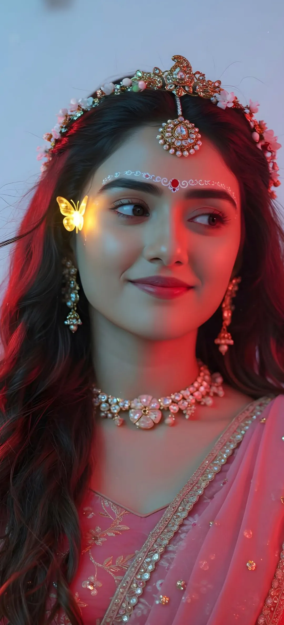 “Floral Diva” Prompt for Girls | Pink Saree in Sunset Tulip Field Portrait of a beautiful woman standing in the middle of a vibrant colourful tulip , jasmine flower field. She is wearing a pink silk saree . Her black hair is styled in loose waves, and she is adjusting her saree. The sun is setting, casting a warm, golden light over the field, The style is a professional photograph, vibrant and cinematic.